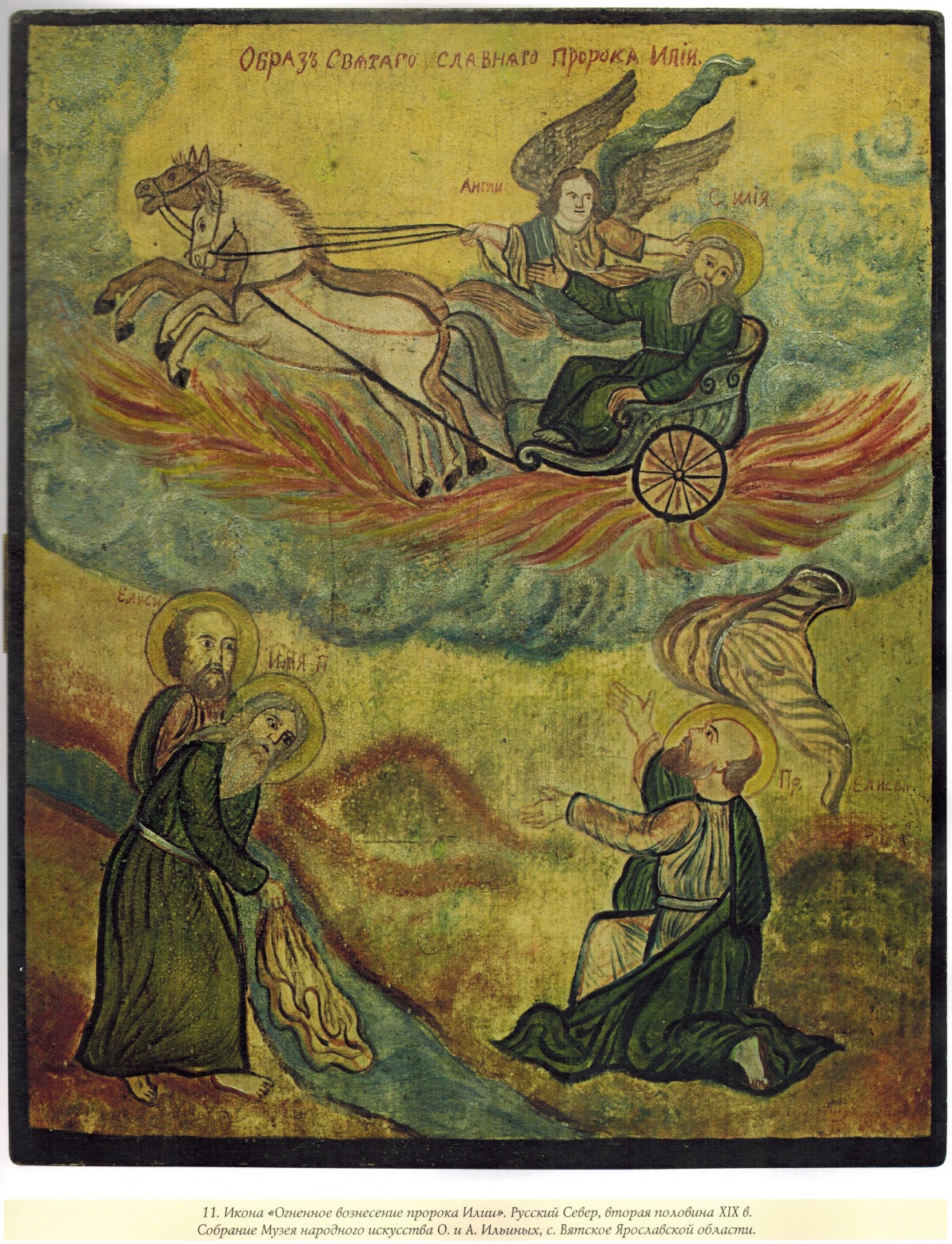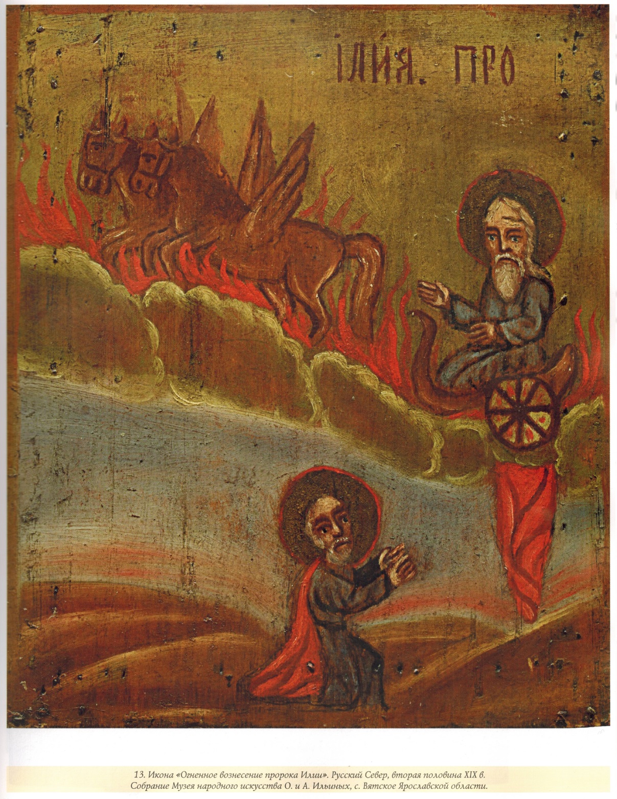 Обозревая экспонаты на выставке, «Народная икона из музейных и частных собраний» в Российской академии художеств, нельзя не отметить большое количество представленных здесь образов огненного вознесения пророка Ильи. Это неудивительно, так как Илья Пророк был особо популярен именно в народной среде.