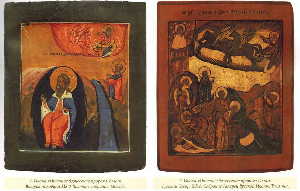 Данные аспекты культа Ильи, безусловно, имеют глубоко народный характер. Они сложились в процессе длительной и сложной интерпретации ветхозаветных преданий, которые тесно переплетались с дохристианскими славянскими верованиями. Можно говорить об определенной связи между культами Ильи Пророка и языческого Перуна-«громовержца» и о трансформации в народном сознании языческого бога в христианского святого. По мнению Э.С. Смирновой, основную роль в формировании культа и почитания Ильи Пророка играли не «архаические языческие реминисценции, а легенды Ветхого завета, известные на Руси по переложениям богослужебных текстов и другим источникам»9.
