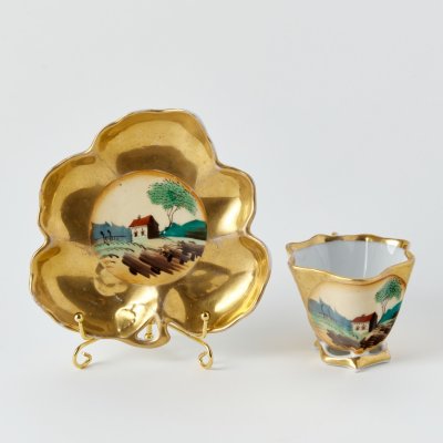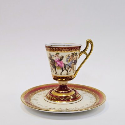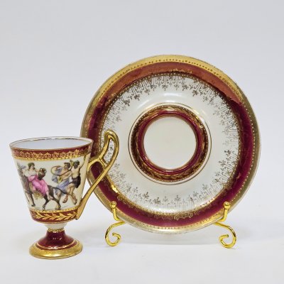 Старинная чашка с портретной живописью и блюдцем