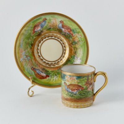 Старинная кофейная пара с ручной росписью в виде куропаток