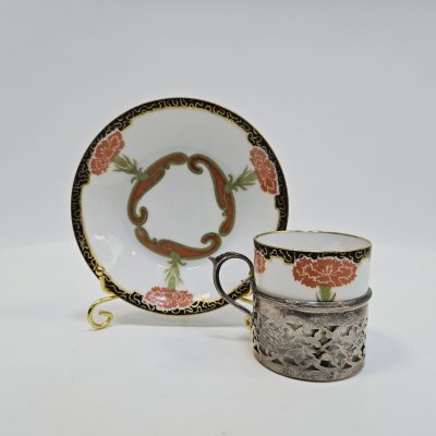 Чашка для кофе с блюдцем в серебряном подстаканнике