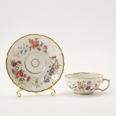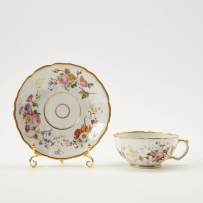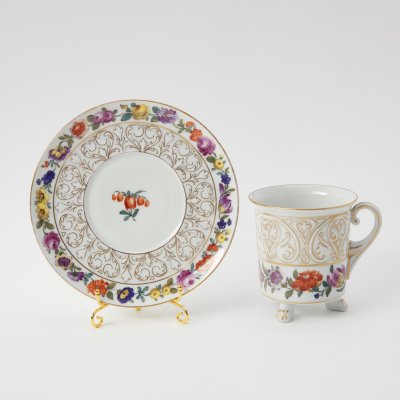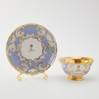 Чашка с блюдцем из банкетного сервиза Великого князя Александра Николаевича. Клеймо времен правления Александра III