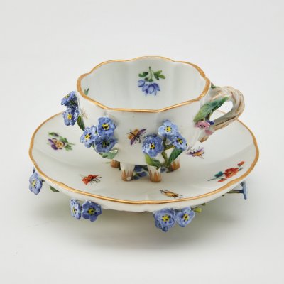Чашка с блюдцем, лепка незабудки