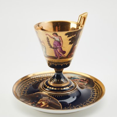 Чашка с блюдцем в венском стиле с мифологическими сценами