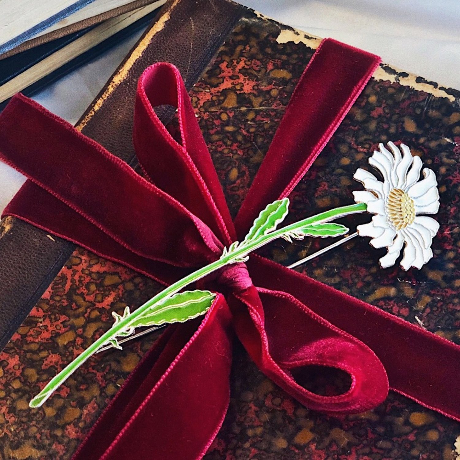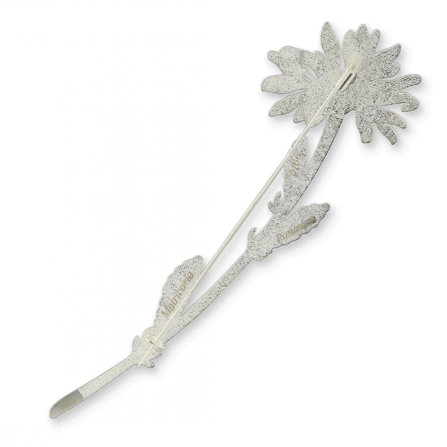 Коллекция "Гербарий Татьяны Поляковой" Брошь "Ромашка" "Я никогда не гадала на полевых ромашках. Но верила в поверье о том, что там, где упала звезда, выросла ромашка. Ромашки для меня звездные цветы. Отличительный знак. Свой первый венок помню. Это и была корона детства. Даже сейчас я определяю наступление лета по гордым, распутавшимся соцветиям, жду возможность остановиться в поле и дотронуться до нежного лепестка. Брошь-ромашку я накалываю на шелковый лацкан смокинга. В знак значимости момента. Не живую гардению, a именно мою петербургскую ромашку. И тема для разговора появляется сразу. Ромашкой украшаю свои белые мужские рубашки. Мужчины же себе этого позволить не могут? Или это намёк?". Размер броши – 14,7 см.