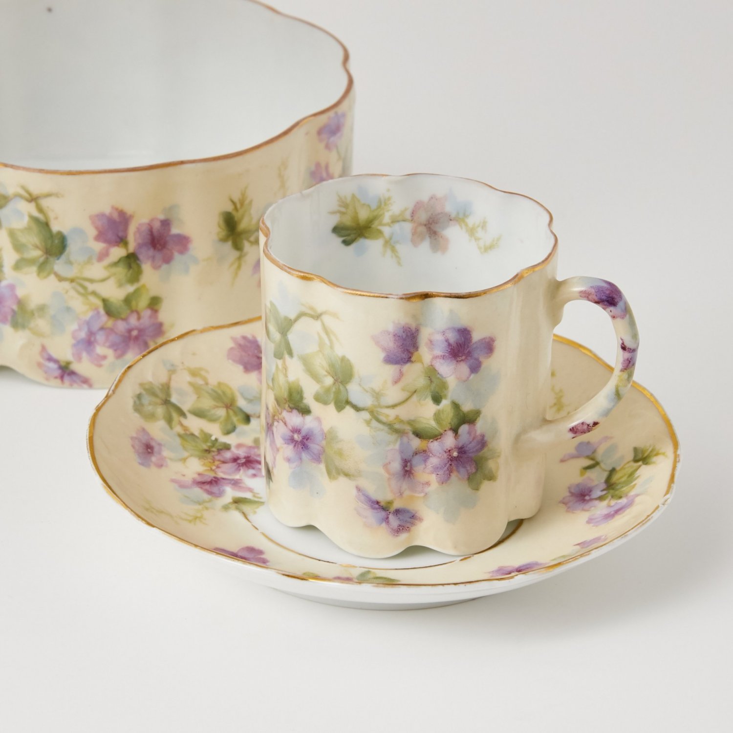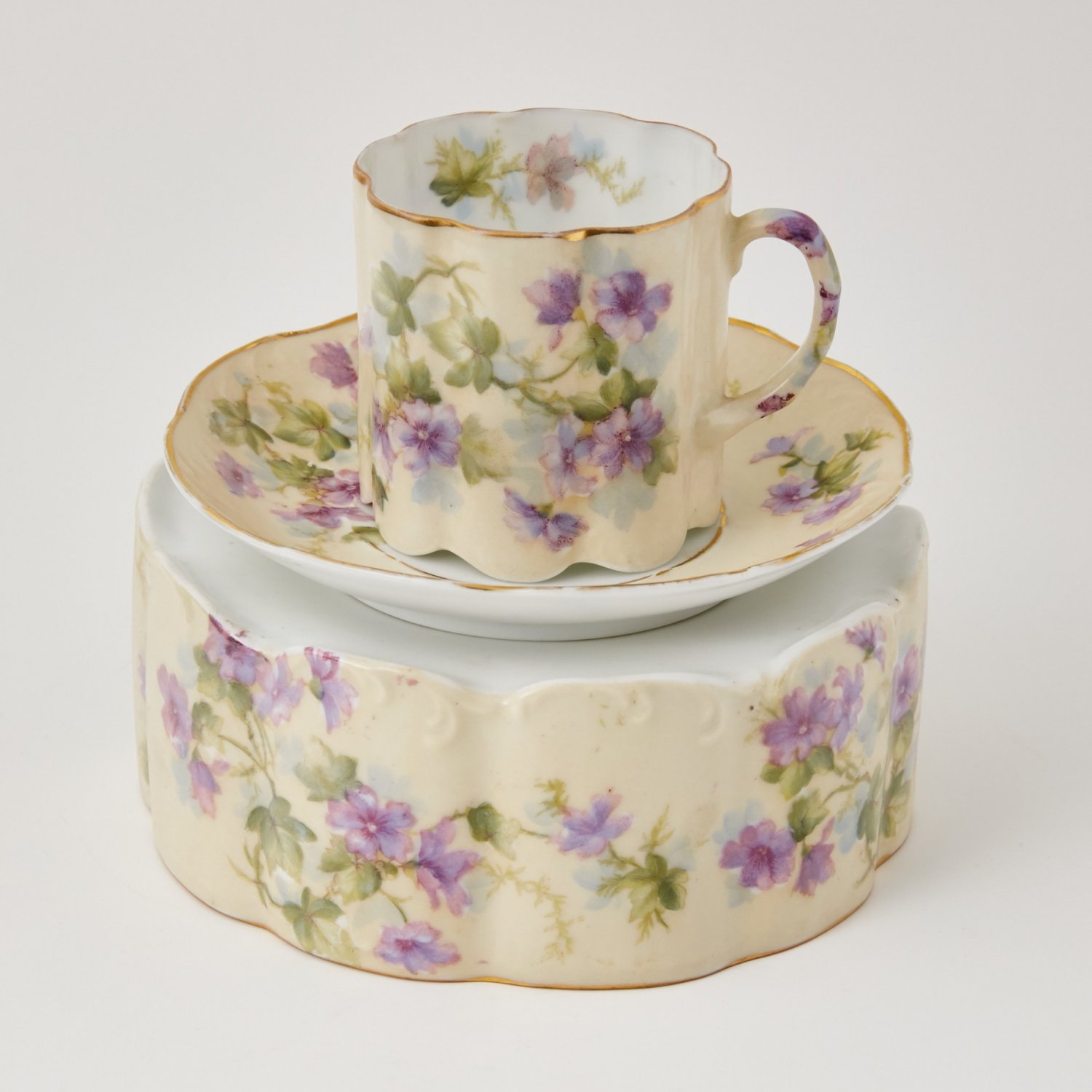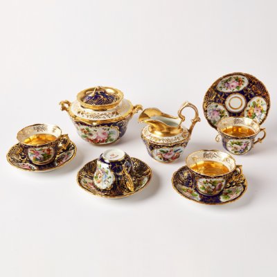 Страна: Императорская Россия; Возраст: 1861-1884; Размер: высота чашки 6 см, диаметр 9 см, объем 120 мл, диаметр блюдца 14,5 см, высота молочника 13 см, диаметр 10 см, высота сахарницы 13 см, диаметр 13,5 см.; Объем(мл): 120