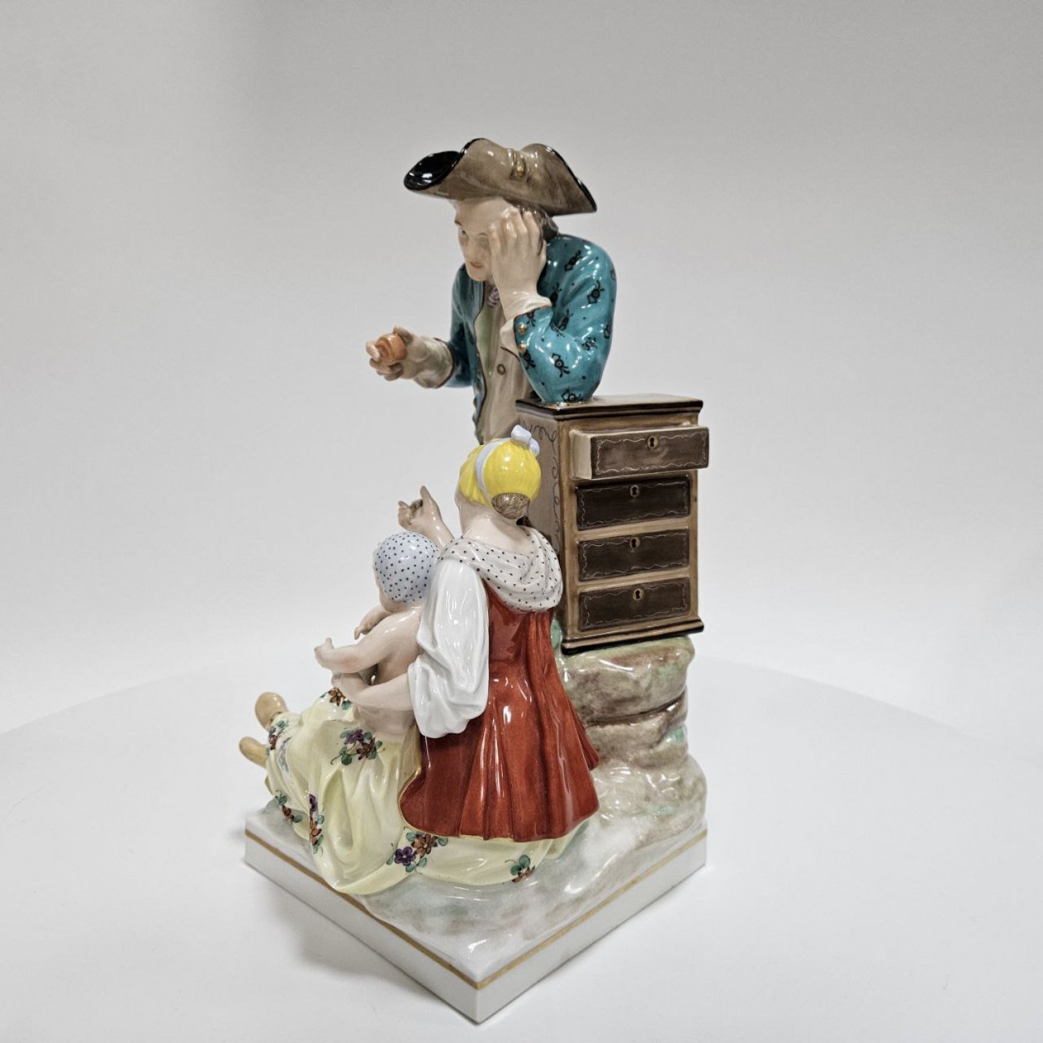 После перехода фабрики Гоцковского к Фридриху II она стала называться Королевской фарфоровой мануфактурой, и ее клеймом с самого начала был королевский скипетр. После перехода фабрики Гоцковского к Фридриху II она стала называться Королевской фарфоровой мануфактурой, и ее клеймом с самого начала был королевский скипетр. Портреты в медальонах, украшавшие берлинскую ампирную посуду и чашки, являются по большей части произведениями скульптора Леонарда Поша. Реакцией на холодный классицизм был стиль бидермейер, отвечающий мещанской любви к удобству и уюту. Изделия Берлинской фабрики именно в таком стиле имели широкой сбыт. Это были массовые изделия, но с определенным специфичным очарованием этой эпохи.
