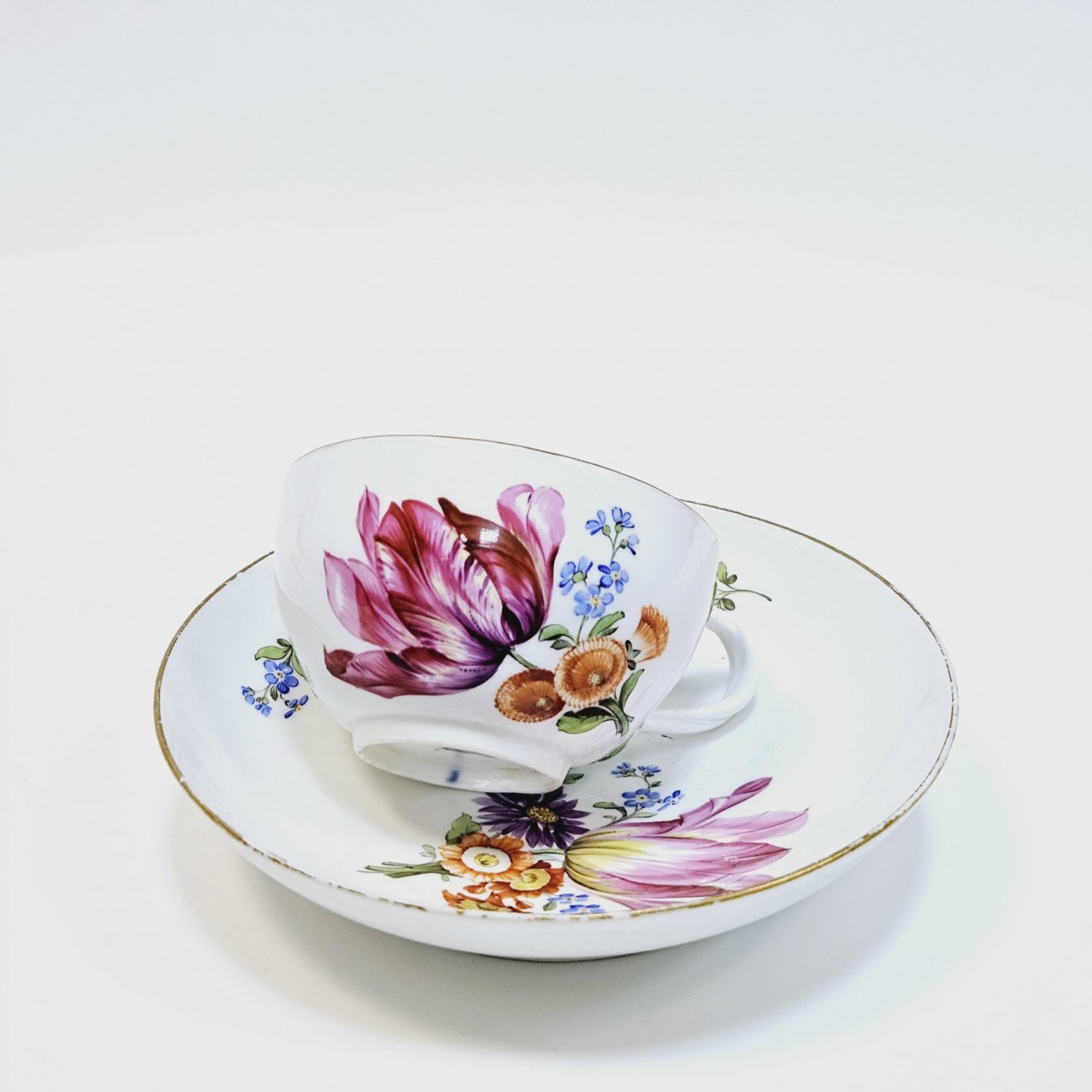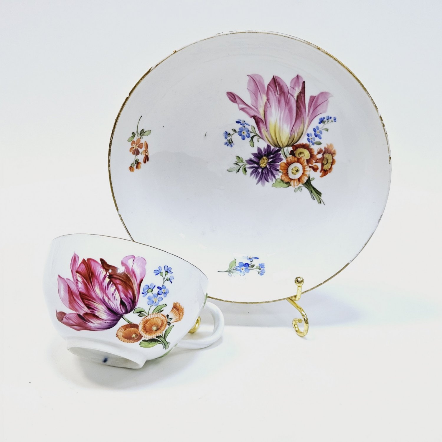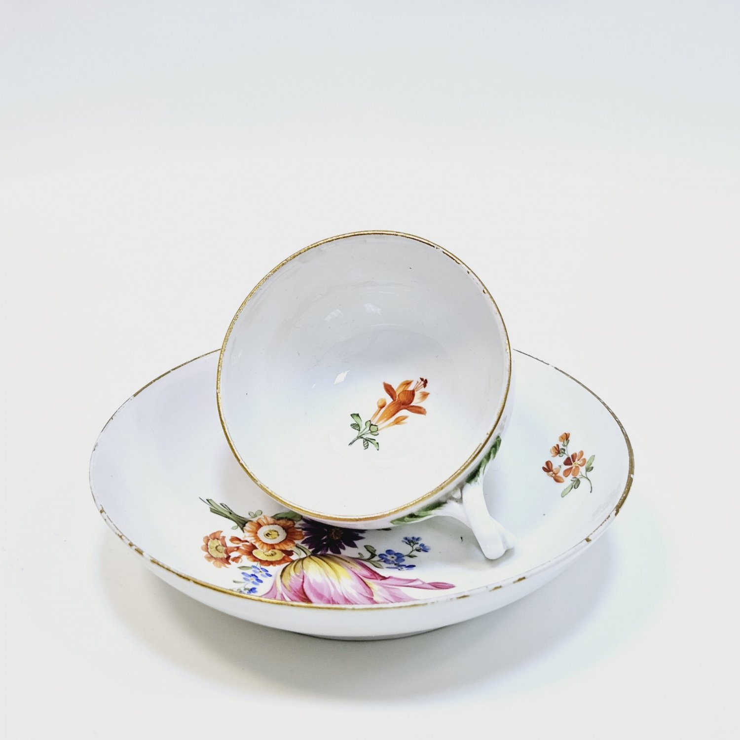 Чашка с блюдцем, Мейссен 1774-1814,полихромная надглазурная роспись цветы Период Марколини