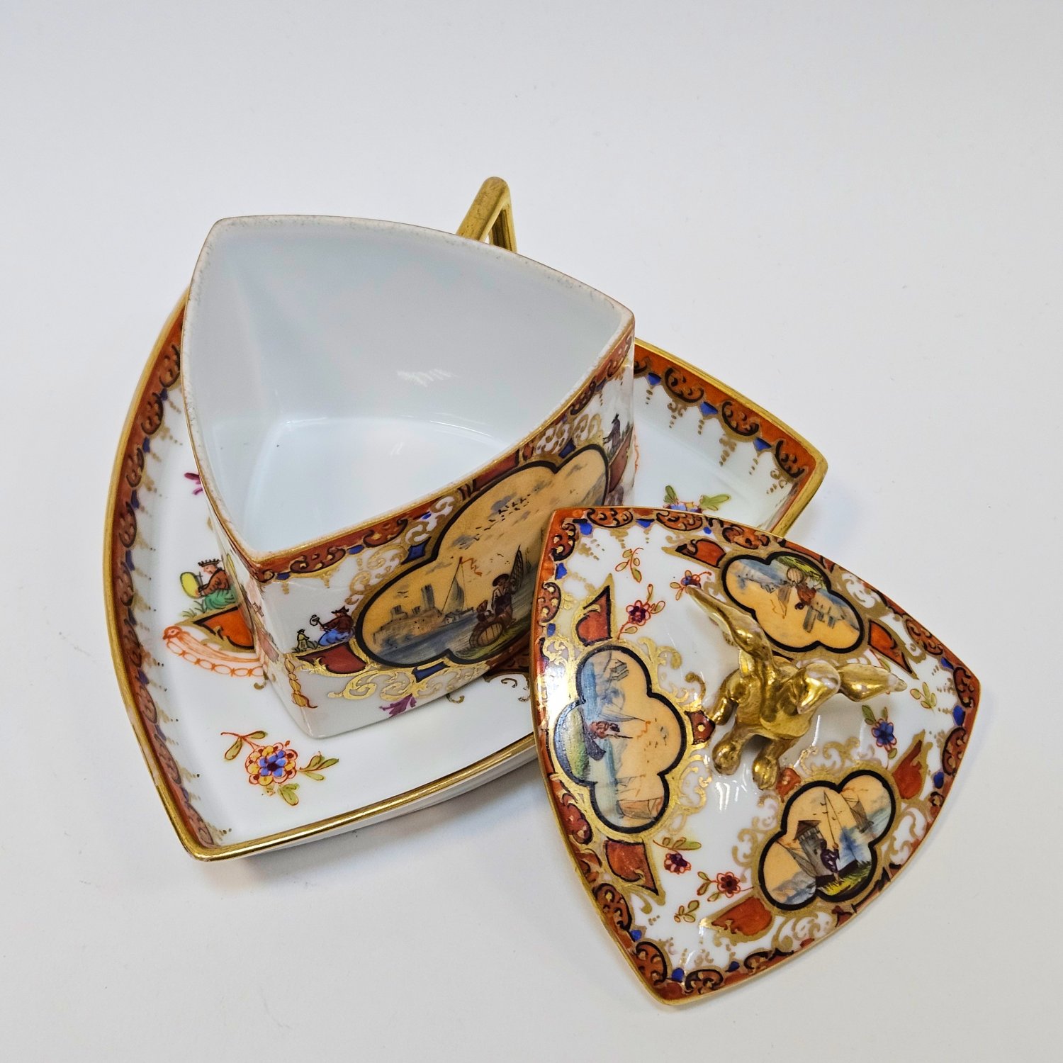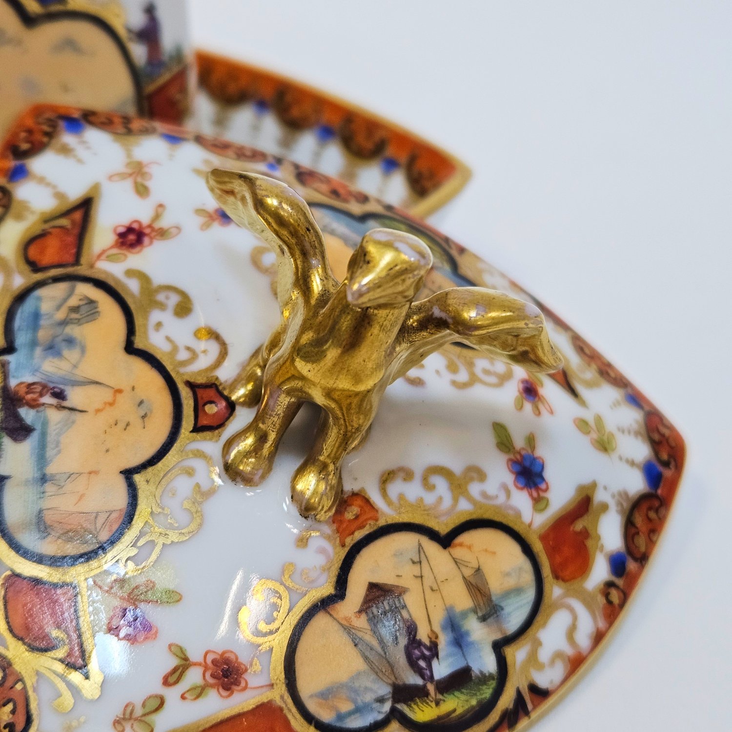 Полихромная надглазурная роспись, золочение, Клеймо AR синее надглазурное