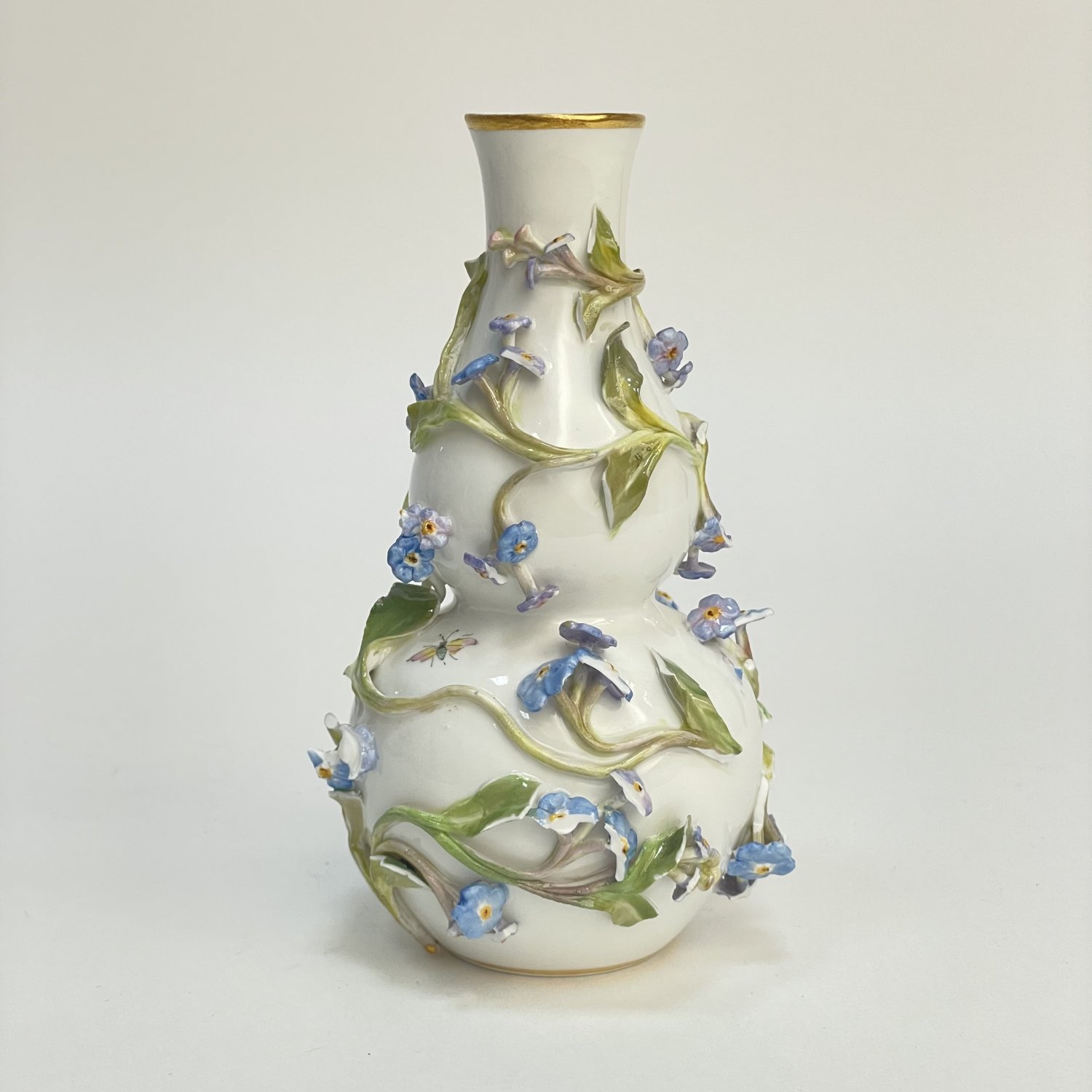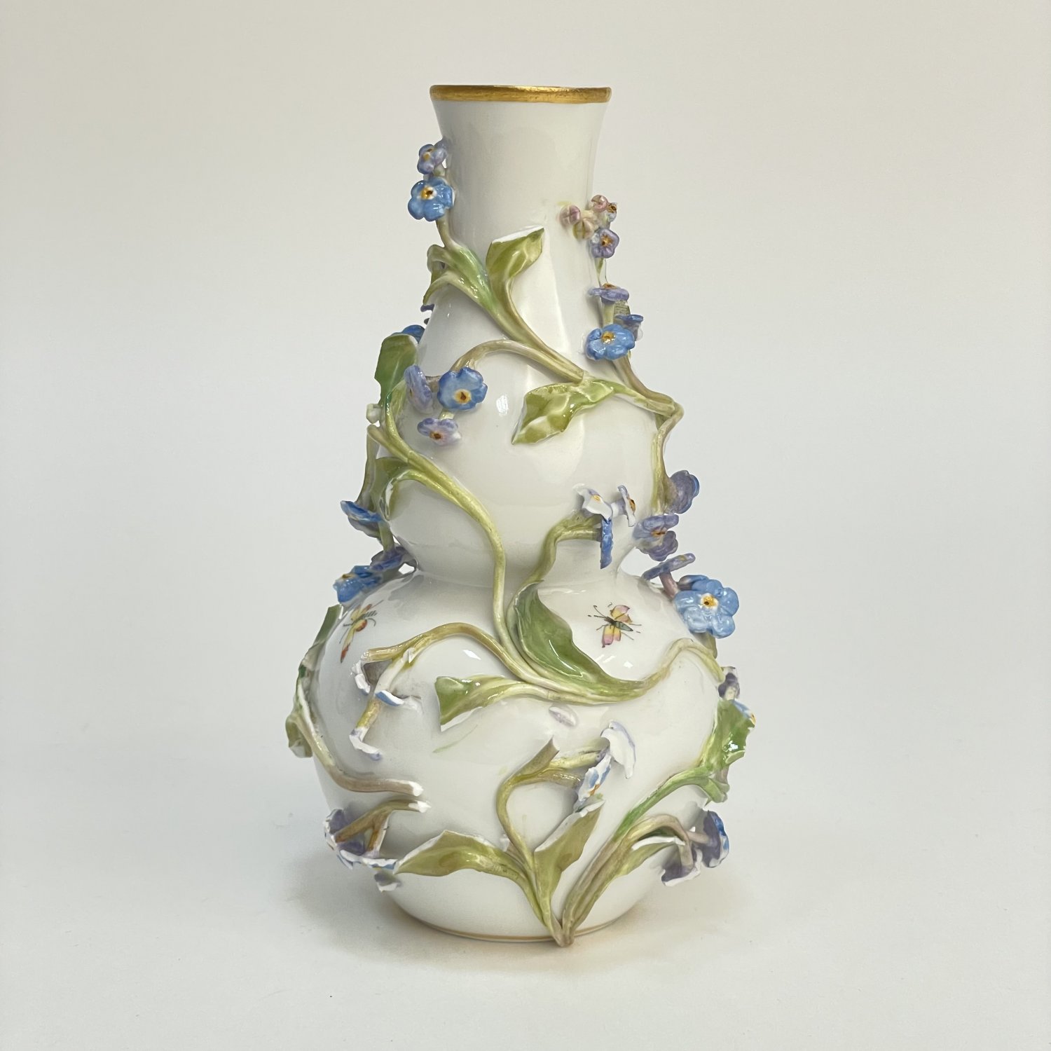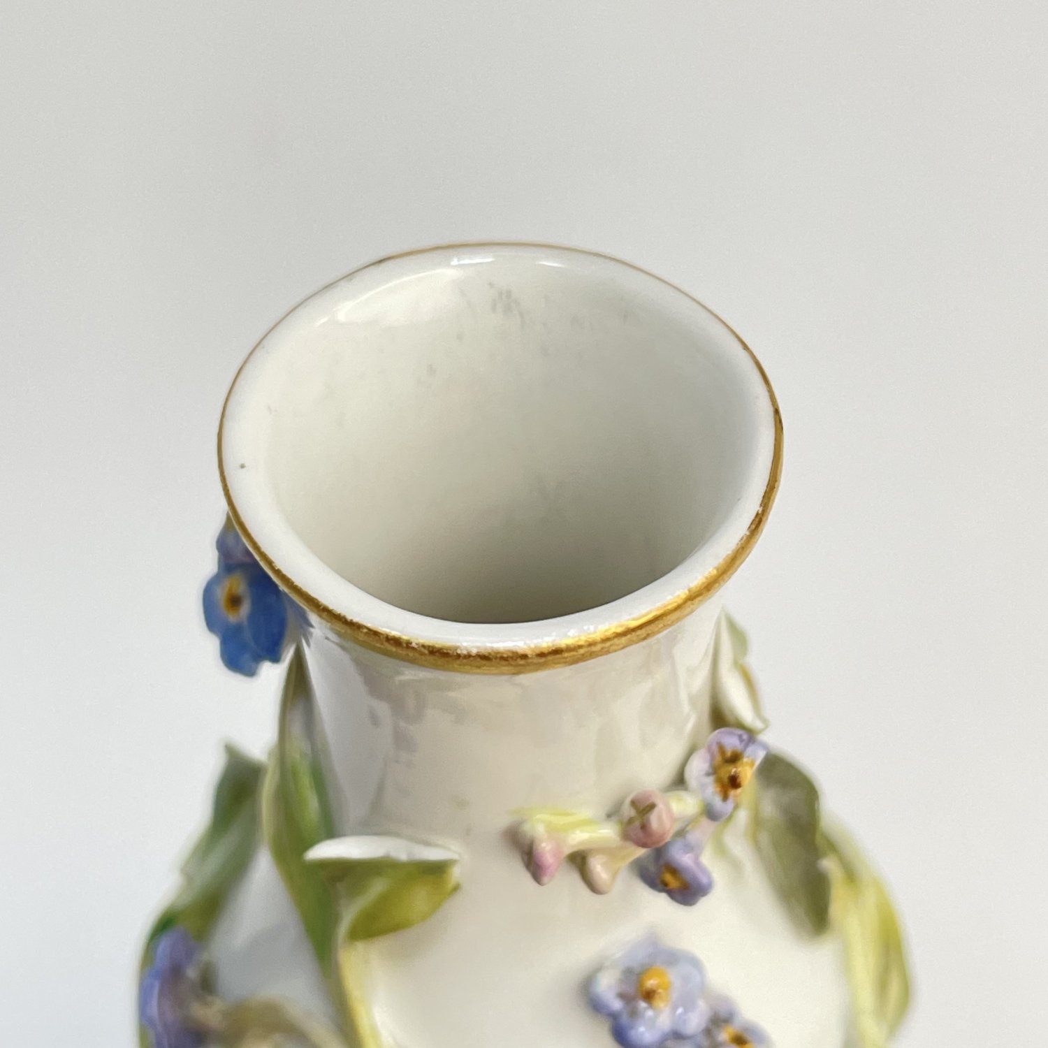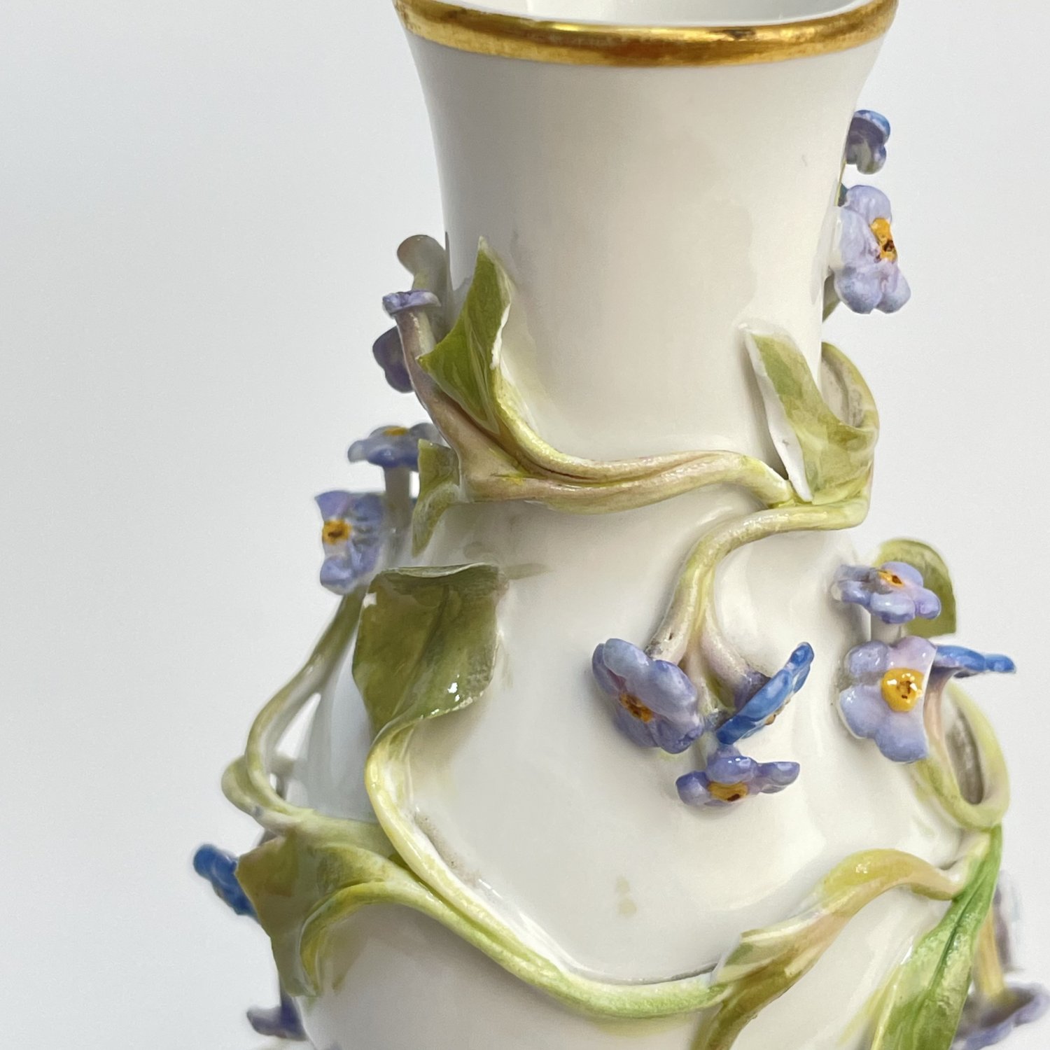 Отличный подарок на 14 февраля и 8 Марта. Ваза Meissen , фарфор 1860-1870 г. Надглазурная роспись полихромная, лепные цветы, позолота. Размеры: высота 12,5 см, диаметр 7 см