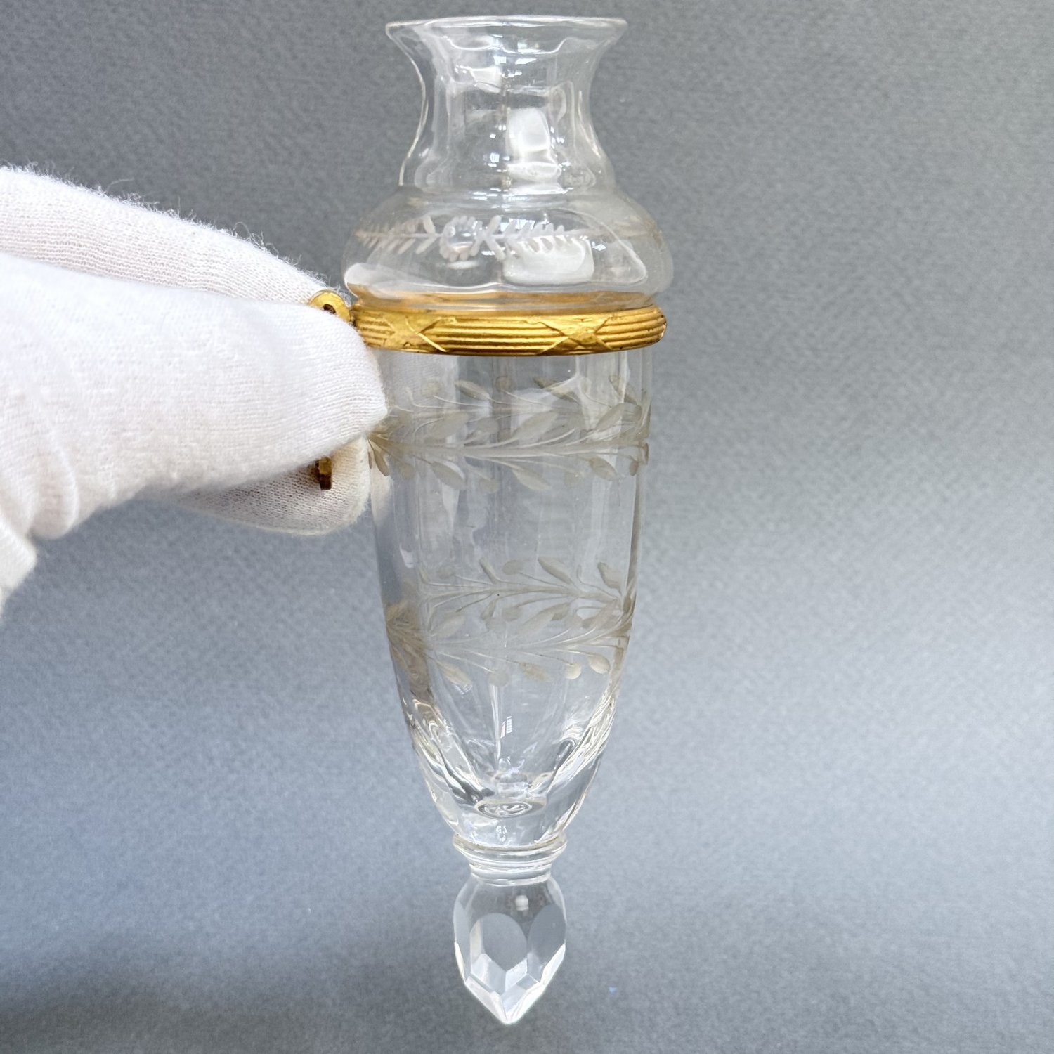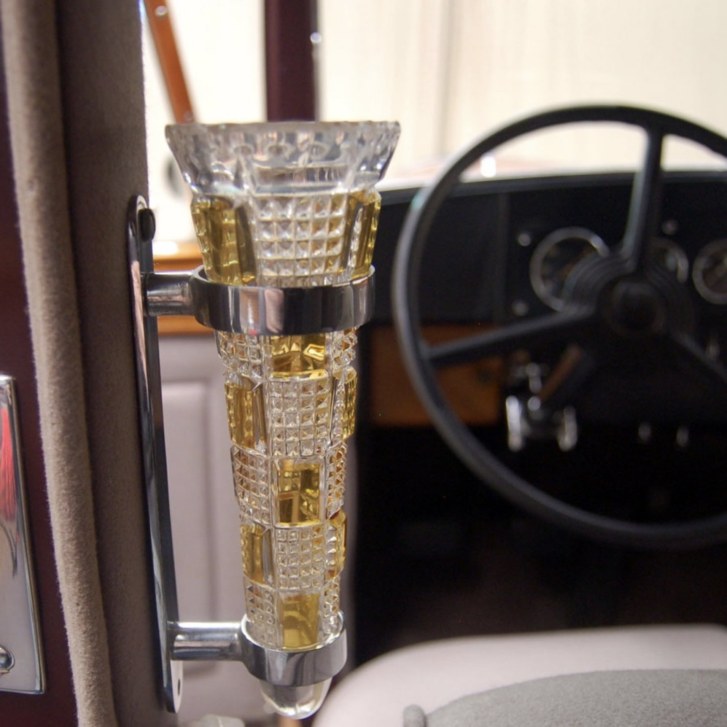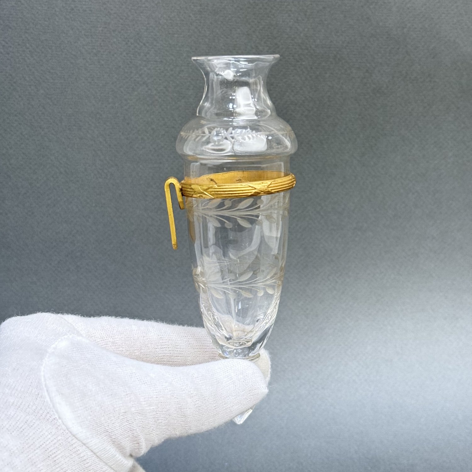 Вазочка для цветов для раритетных авто Baccarat Франция, 1900 г, Хрусталь, бронза. Размеры: высота 14,7 см, диаметр тулова 4,5 см, диаметр горловины 3,3 см